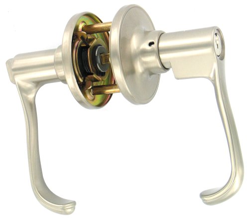 Schlage J54VTOR619 Torino Keyed Entry Lever, Satin NickelSchlage J54VTOR619 Torino Keyed Entry Lever, Satin Nickel Features:; Torino style keyed entrance levers; Unlocked by key from outside when outer lever is locked; Inside lever unlocked by rotating interior turn-button; Adjustable radius latch fits 2-3/8" or 2-3/4" backsets; 1-5/8" x 2-1/4", radius corner, full lip, no box strike; 1" x 2-1/4" triple option latch with square corner, 1/4" round corner and circular drive-in faceplates, 1" housing diameter, and 1/2" throw; Includes 2 brass cut, 5-pin, C section keys per lock; Fits doors 1-3/8" to 1-3/4" thick; ANSI A156.2, 1996 series 4000, grade 3 certification; Satin Nickel
